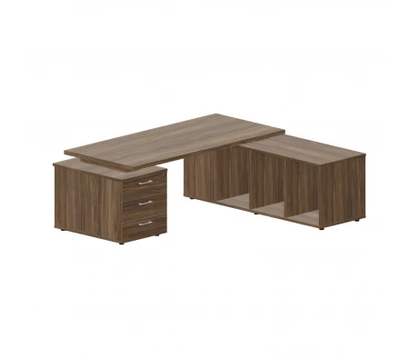 Стол письменный на опорной сервисной тумбе (правый) 200х180х73,5 Norman Орех