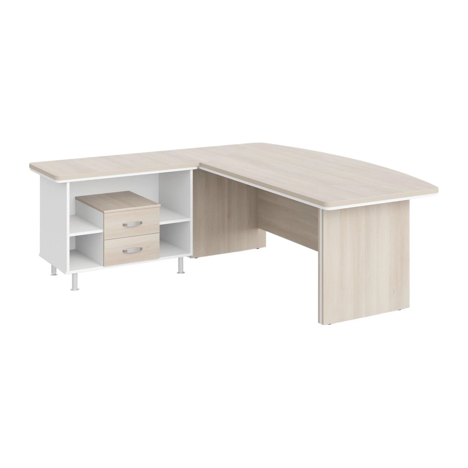 Стол руководителя угловой L 200х205х76 Berlin Director Акация светлая/Белый премиум